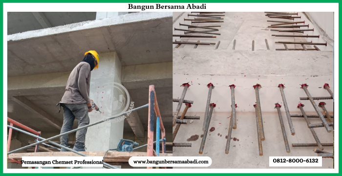 - Re-anchoring atau pemasangan ulang baut angkur dan sambungan baja.